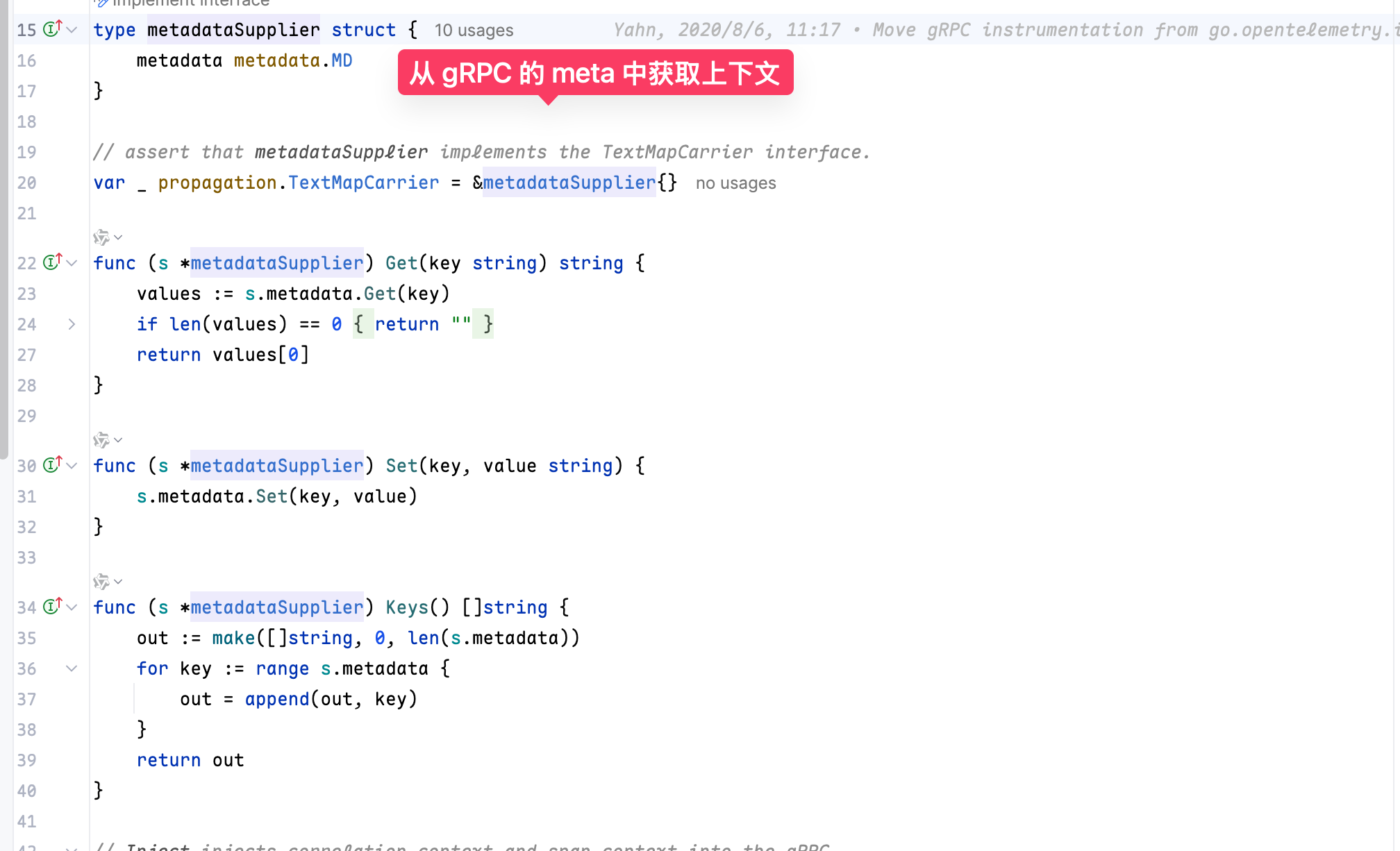 但我们需要在 RPC 调用的过程中在上下文里包含 Trace 时,通常都是将 TraceId 作为元数据进行传递。
